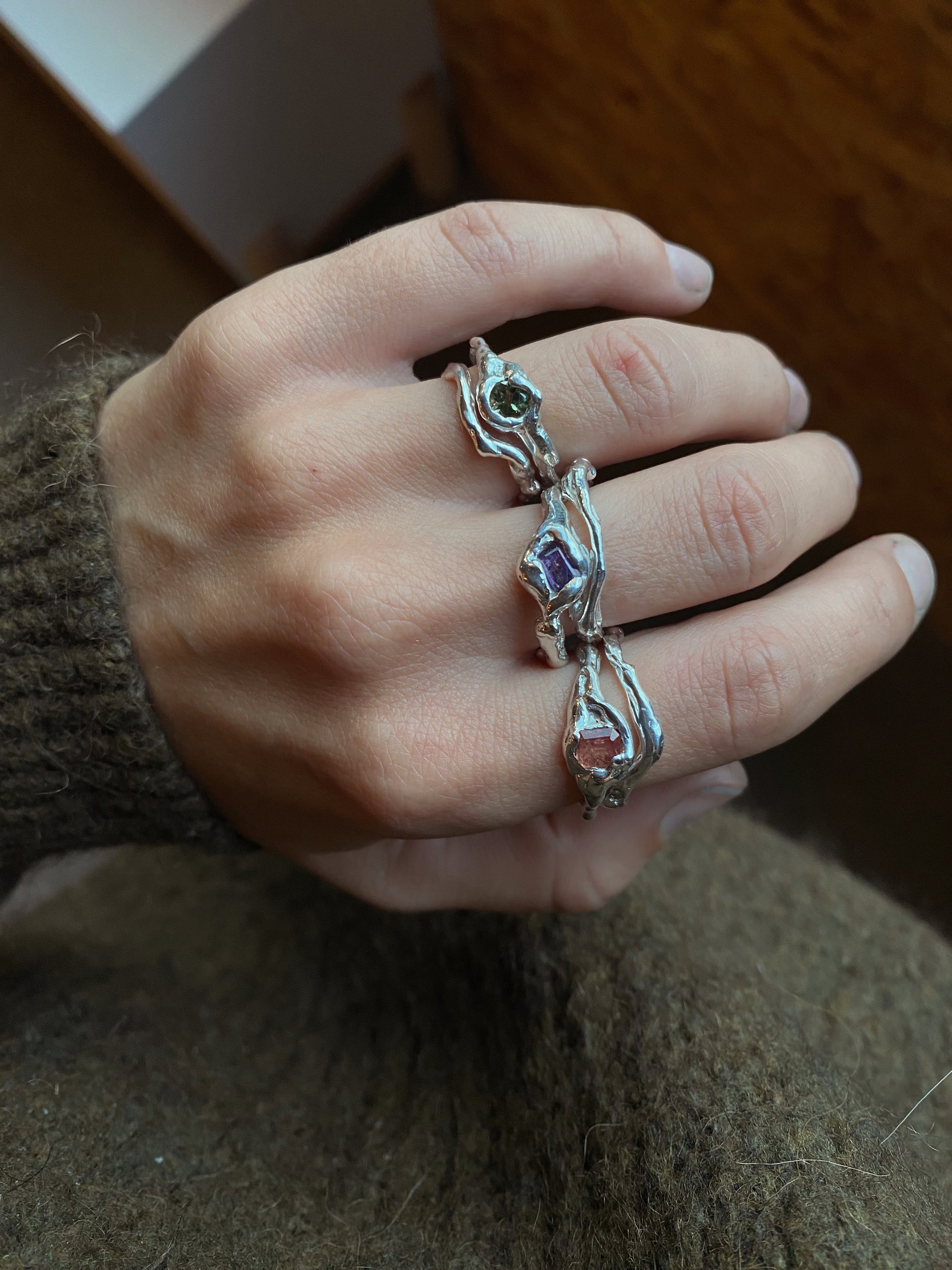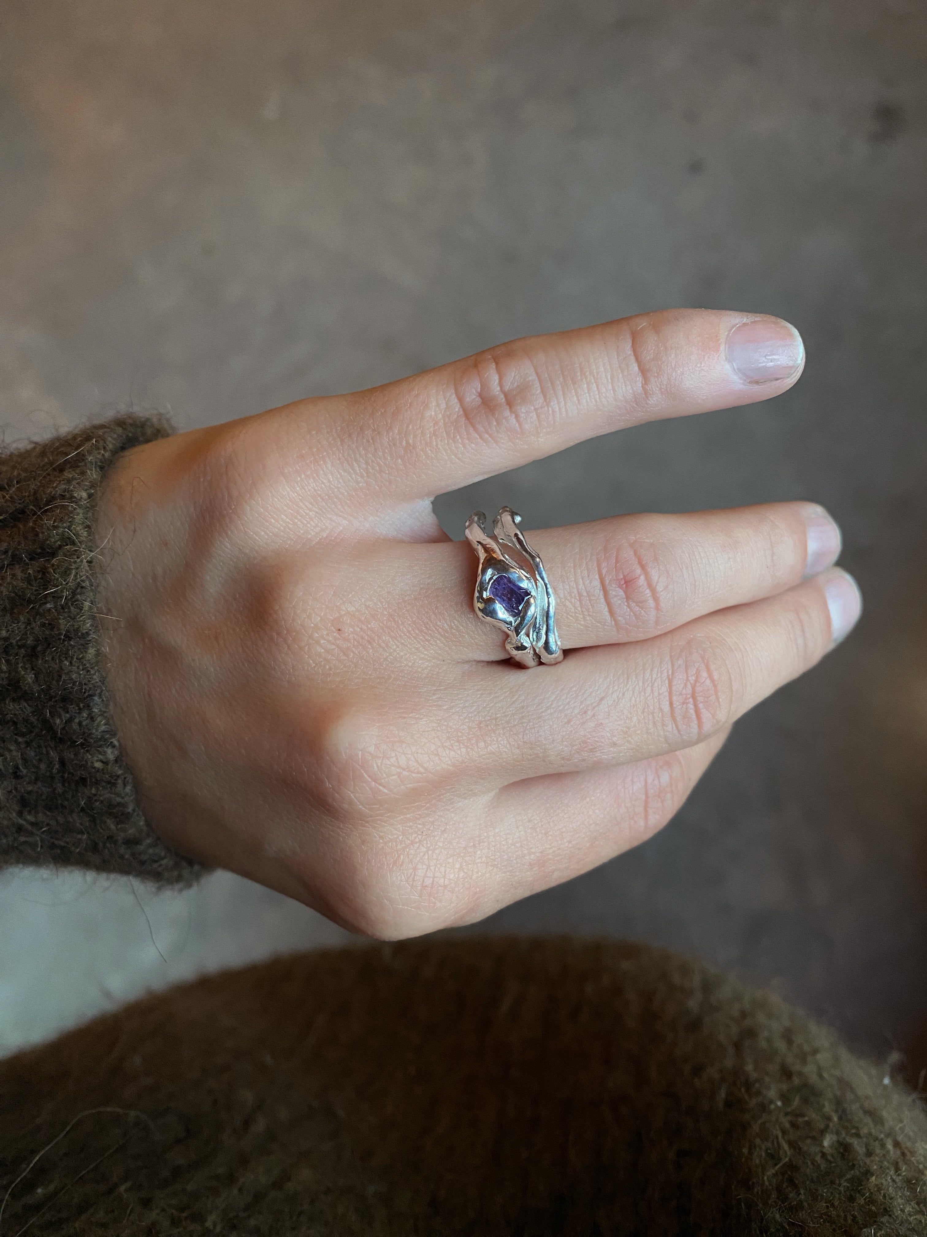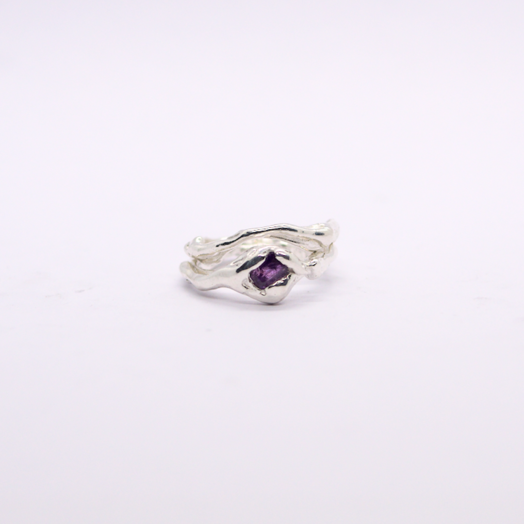 Ensemble de deux bagues en argent 925, sertie d’un saphir violine.
