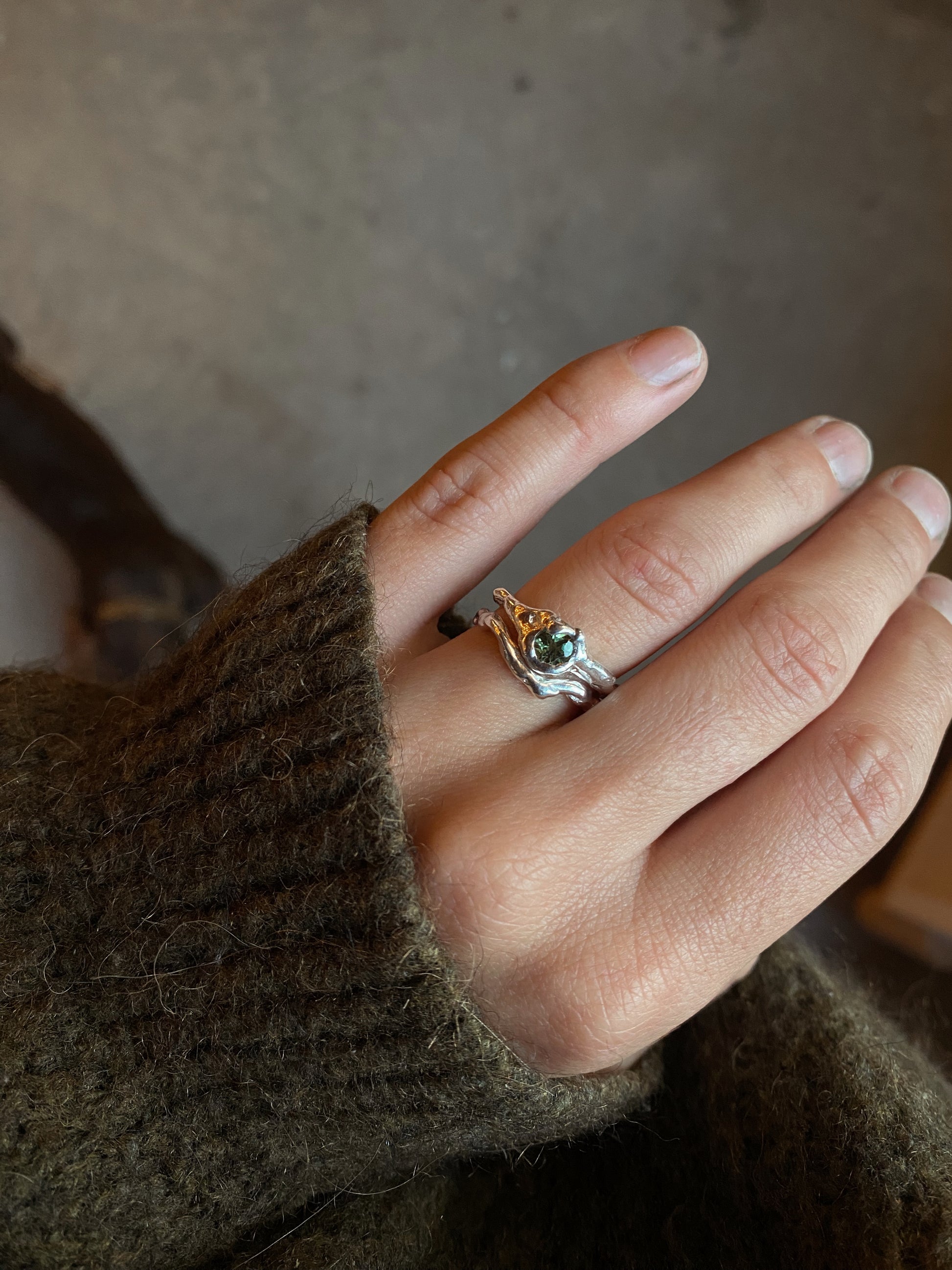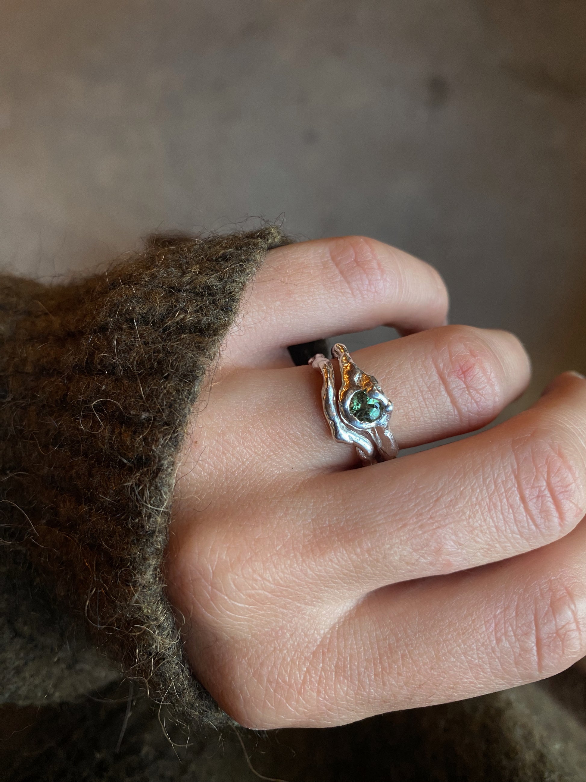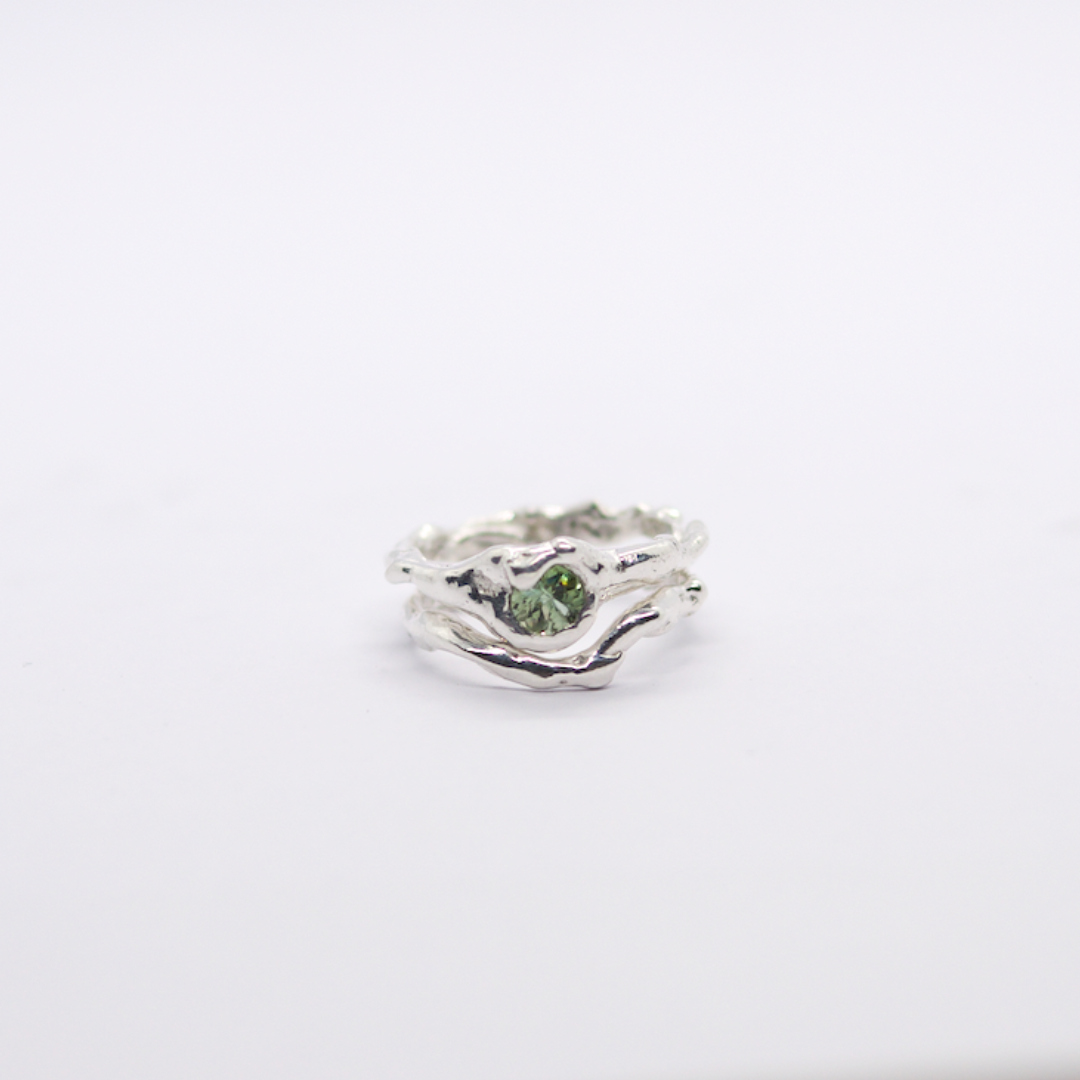 Ensemble de deux bagues en argent 925, sertie d’un saphir vert gris.
