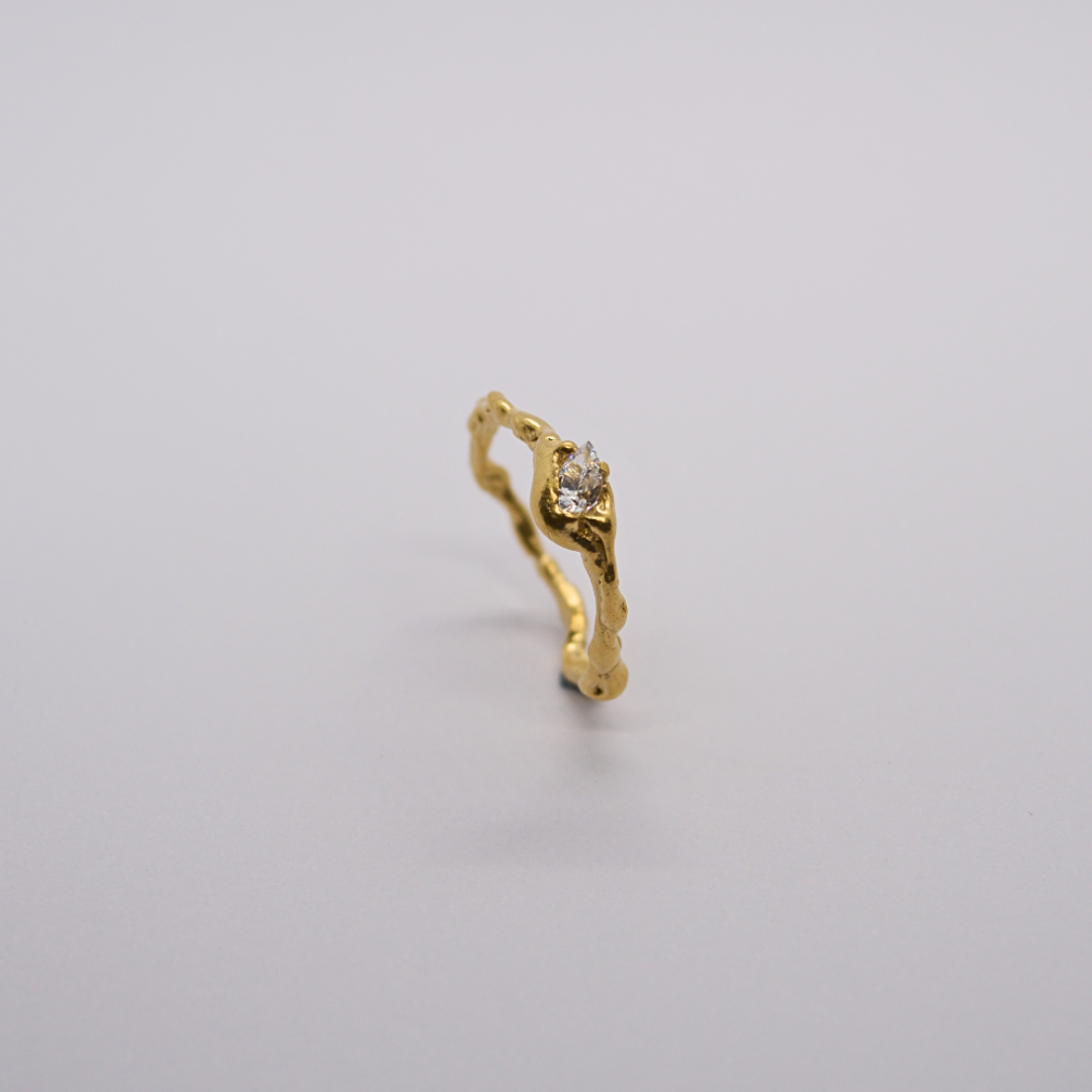 Cette bague aux formes organiques, délicatement façonnée à la main, capture une énergie singulière — un secret à porter près de soi, entre élégance et mystère. Chaque pièce est unique, reflet d’un savoir-faire artisanal et d’une inspiration intime.