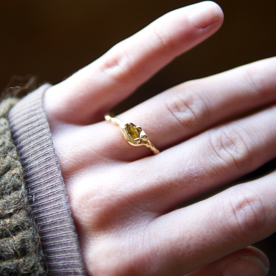 Pour Noël 2025, j'ai repris le modèle best-seller A Love Spell pour une édition exclusive et limitée. La bague est ornée d’une tourmaline naturelle sur un corps de bague organique.
