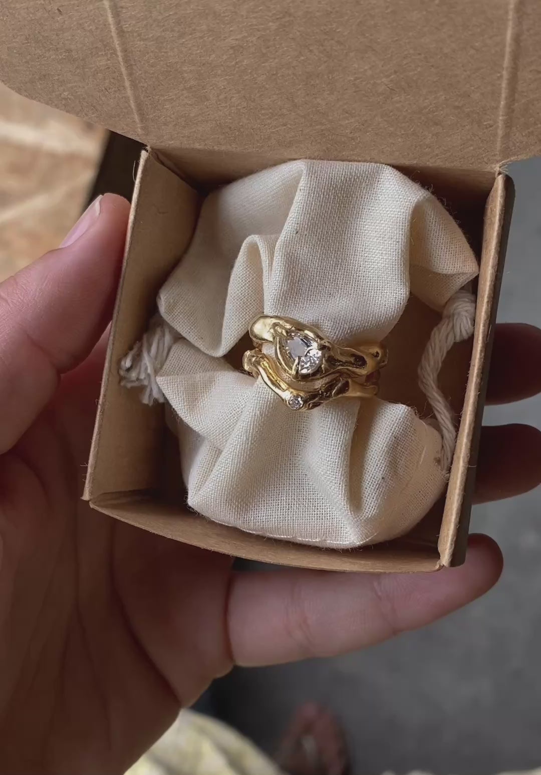 Veuillez noter que des variations légères peuvent apparaître d’une bague à l’autre : c’est la signature d’un bijou artisanal, qui ne sera jamais tout à fait identique à un autre ainsi que des pierres naturelles.