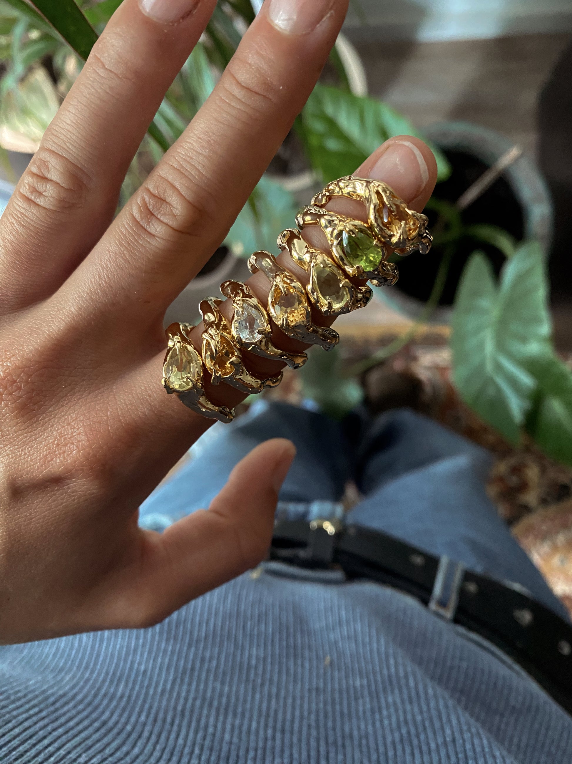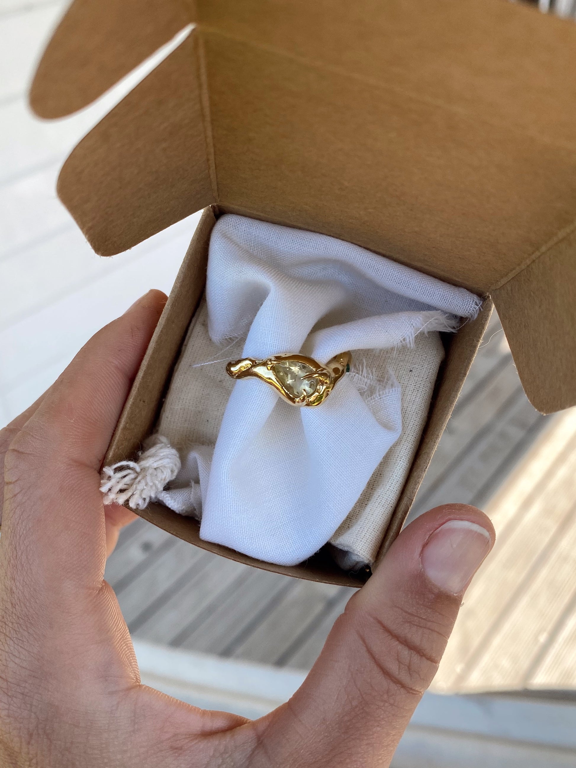 Veuillez noter que des variations légères peuvent apparaître d’une bague à l’autre : c’est la signature d’un bijou artisanal, qui ne sera jamais tout à fait identique à un autre ainsi que des pierres naturelles.