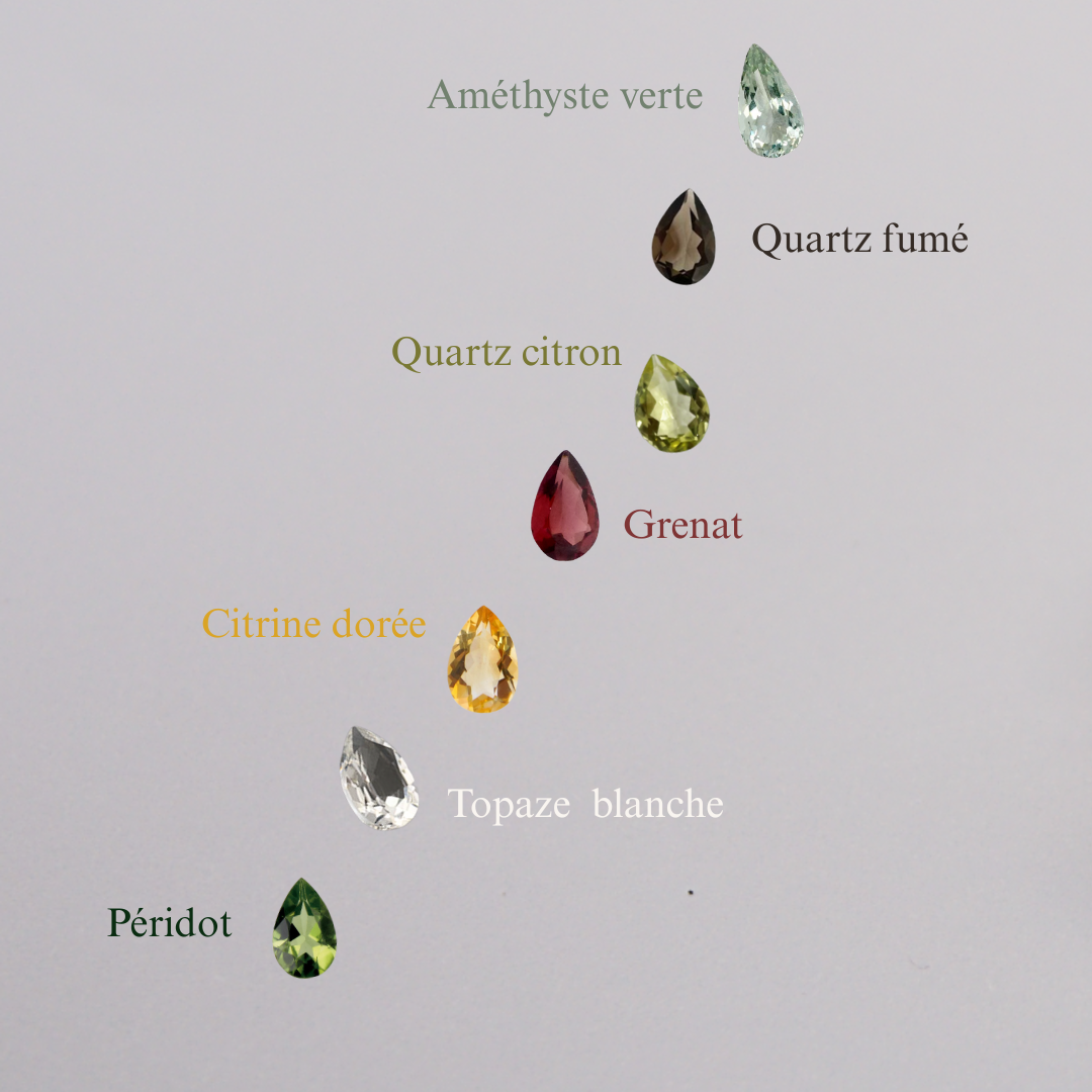 Disponible en argent 925 massif, en vermeil ou en or 9 carats / 18 carats, elle est sertie d'une pierre en forme de poire personnalisée.