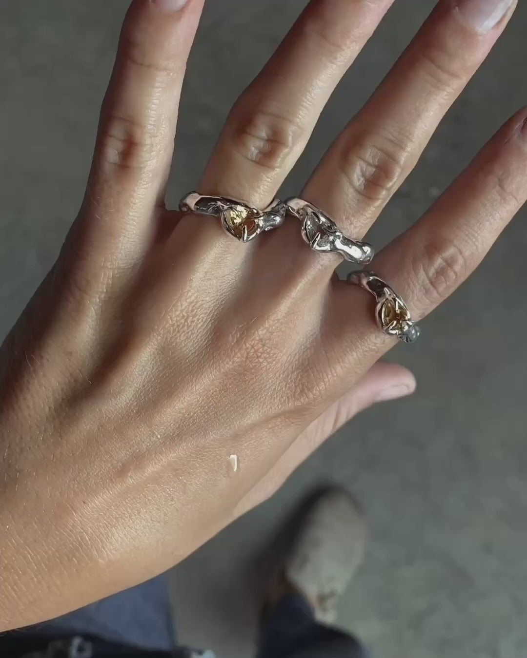 Réalisée à la main selon la technique de la cire perdue, chaque bague est unique, façonnée une à une à l'atelier des Landes.