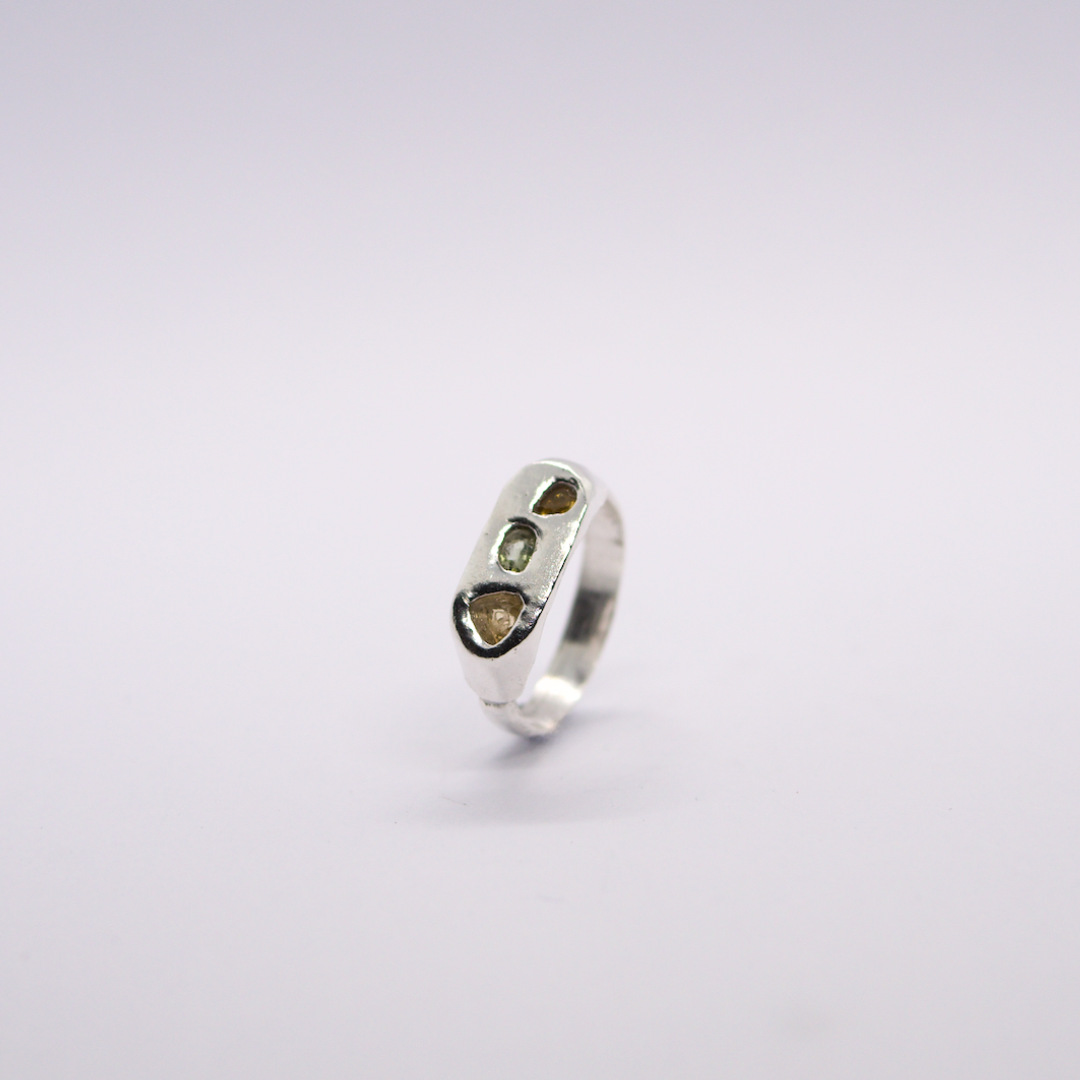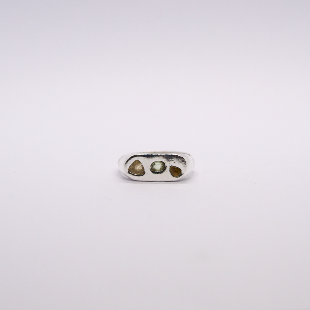 Bague en argent 925, sertie de trois tourmalines colorées.