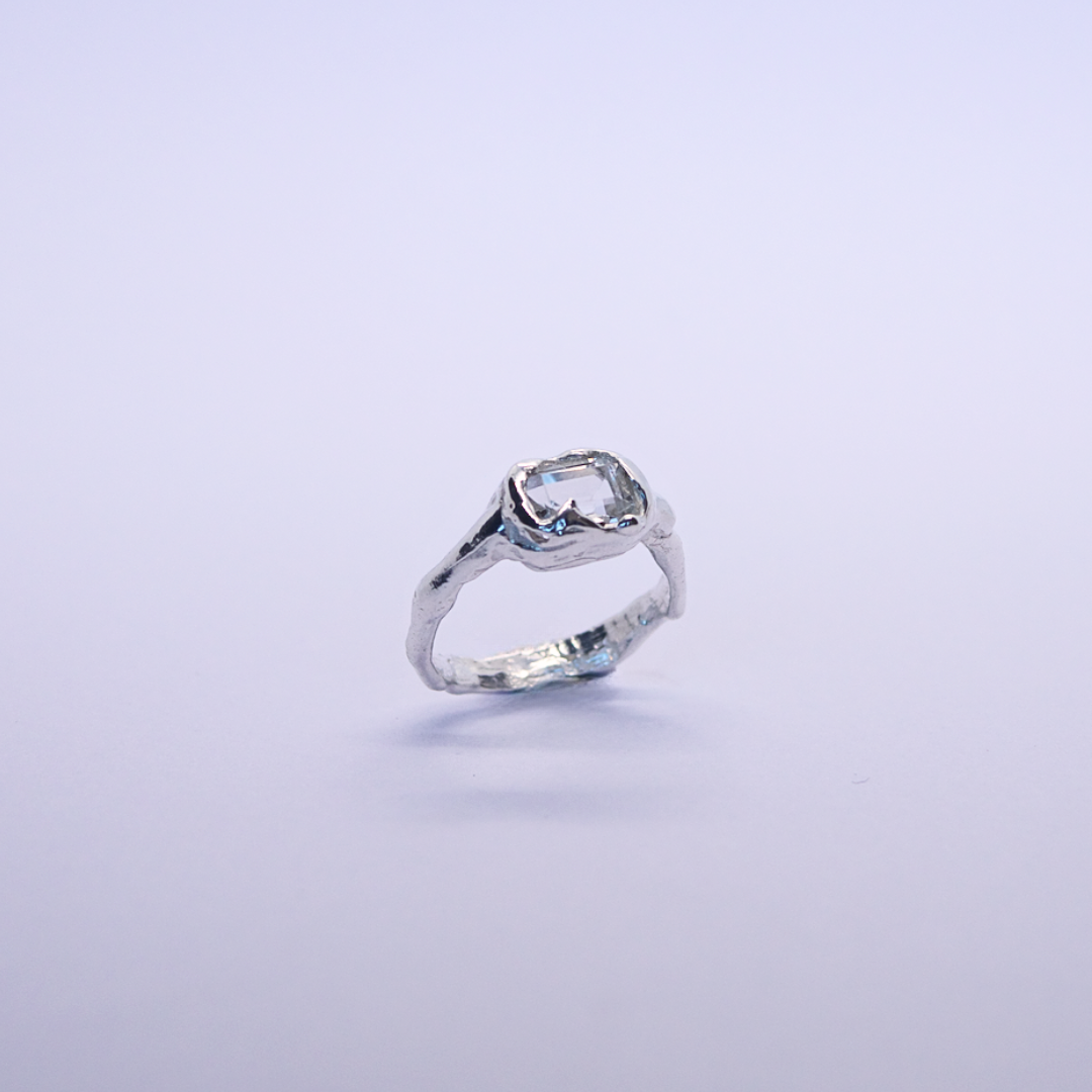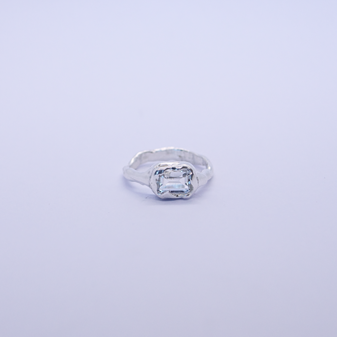 Bague Lake House en argent 925, sertie d’une topaze blanche lumineuse de 7x5 mm, offrant une élégance discrète et intemporelle.