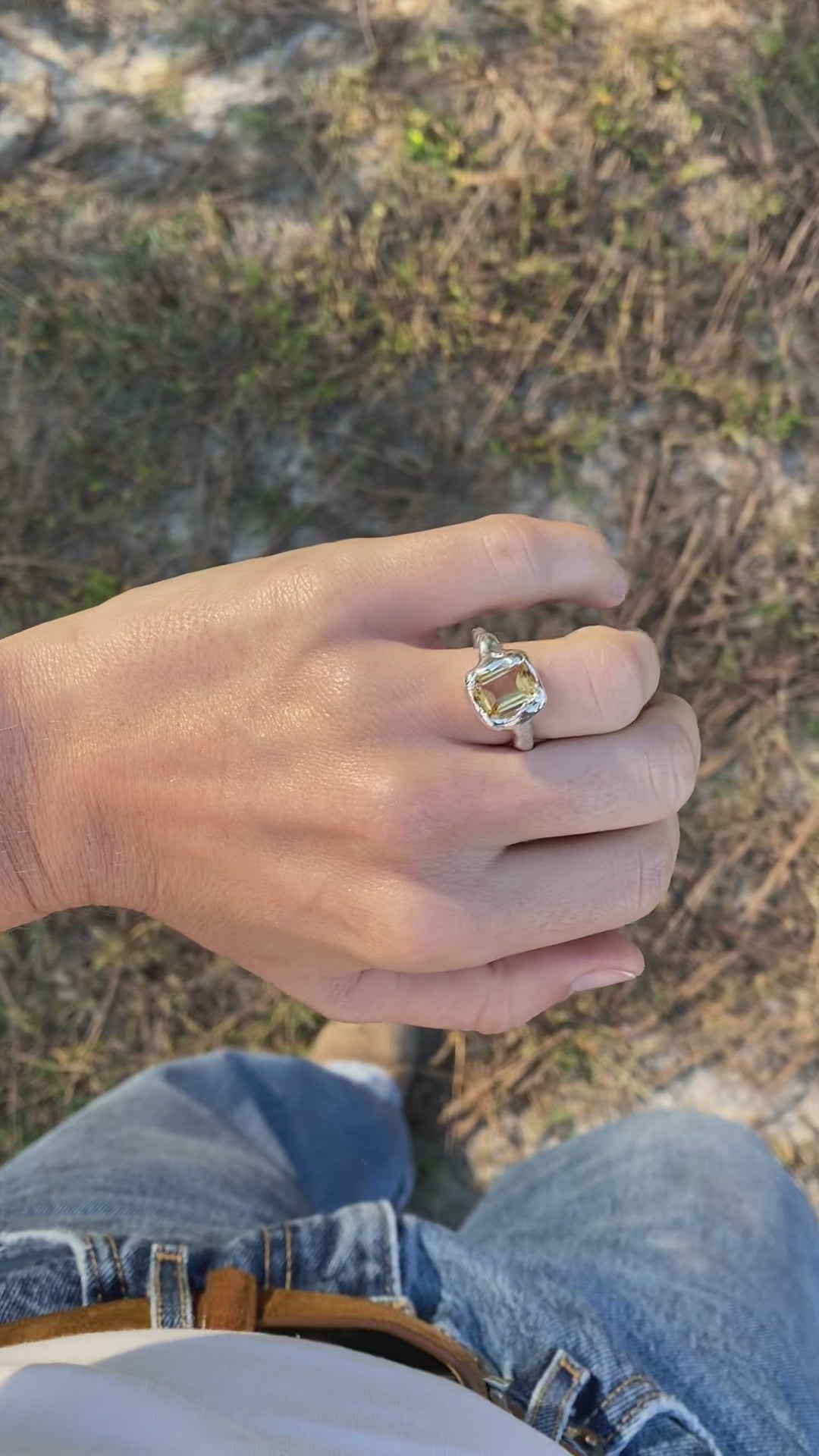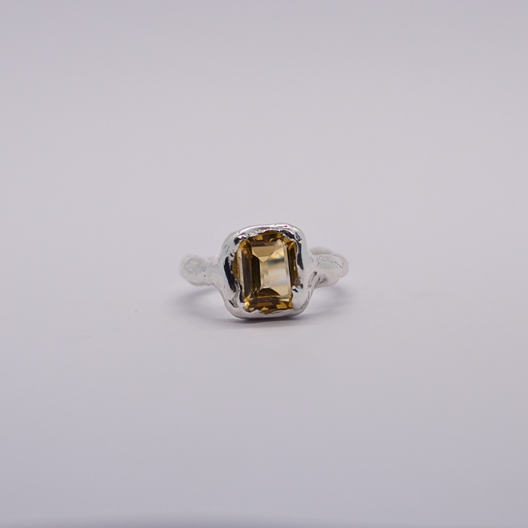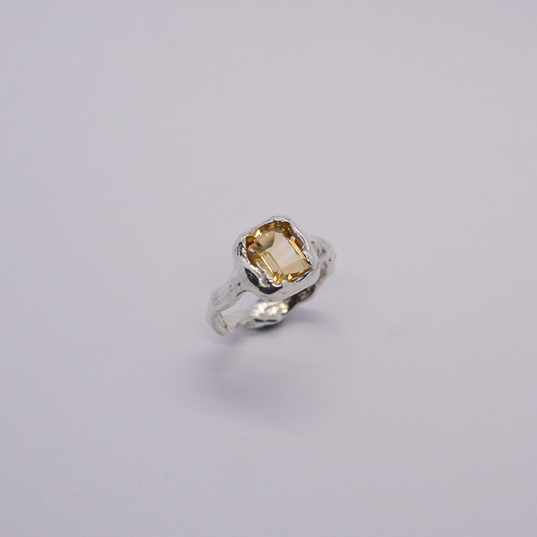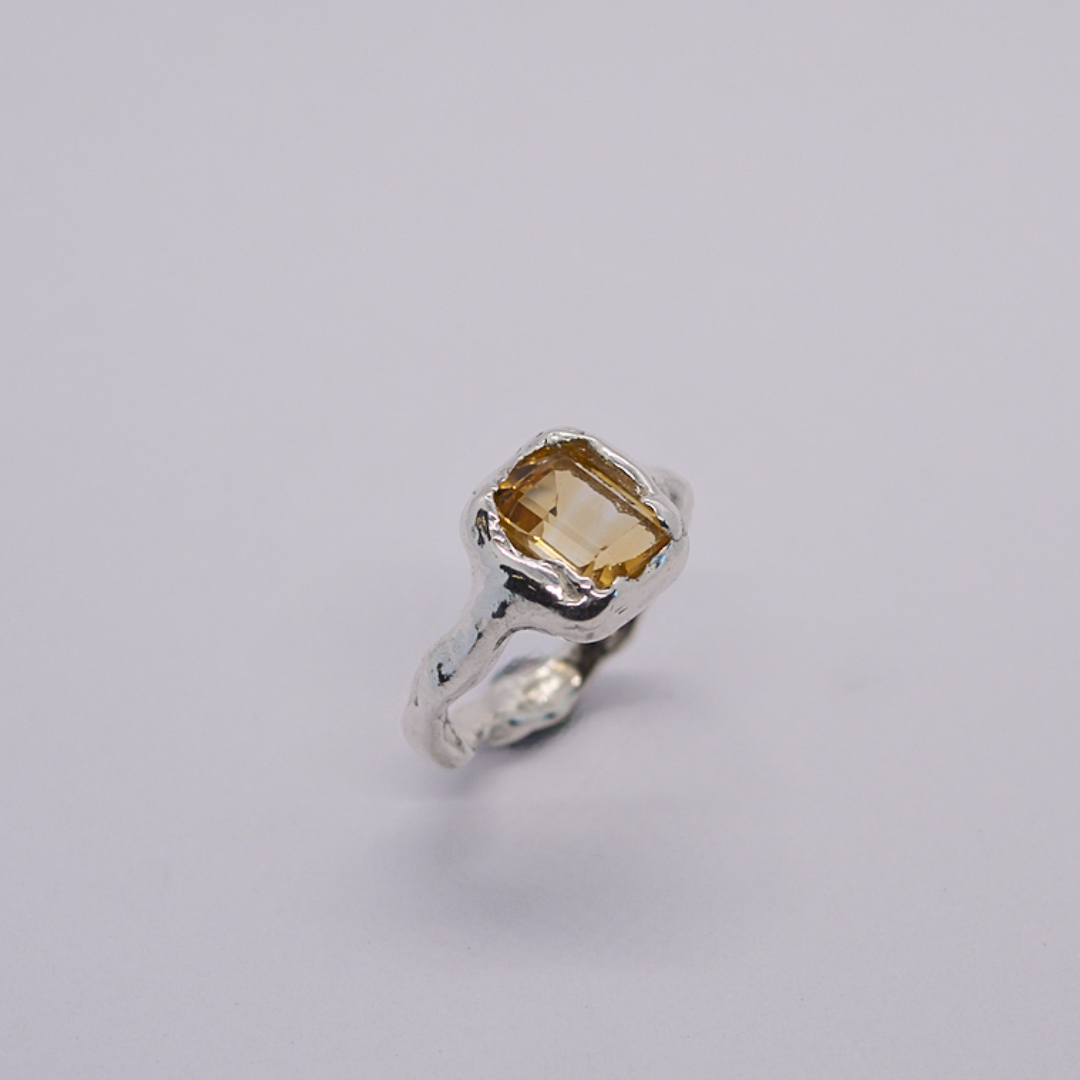 Rêveries s’orne d’une citrine ovale de 10x8 mm, pierre solaire aux reflets dorés. Elle capte la lumière et diffuse énergie, vitalité et clarté. Montée sur un anneau en argent 925 massif ou en vermeil au choix, cette bague conjugue sobriété et éclat.