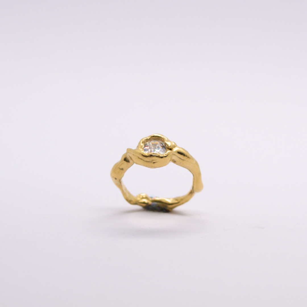 Bague en vermeil (argent 925 plaqué or 18K – 5 microns), sertie d’une oxyde scintillante ovale.