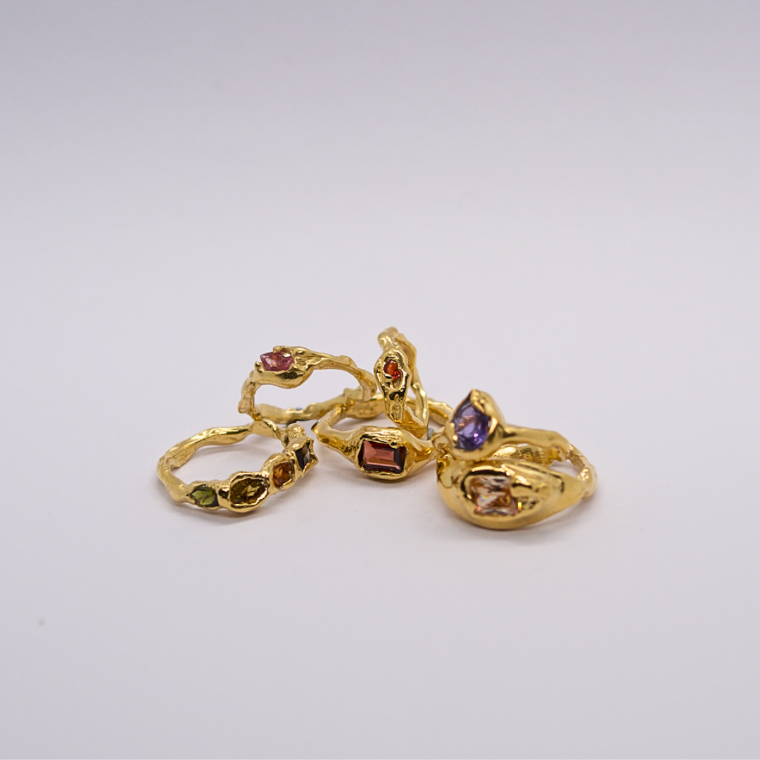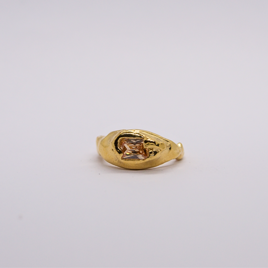 Bague en vermeil (argent 925 plaqué or 18K – 5 microns) sertie d’une oxyde de zirconium pêche.
