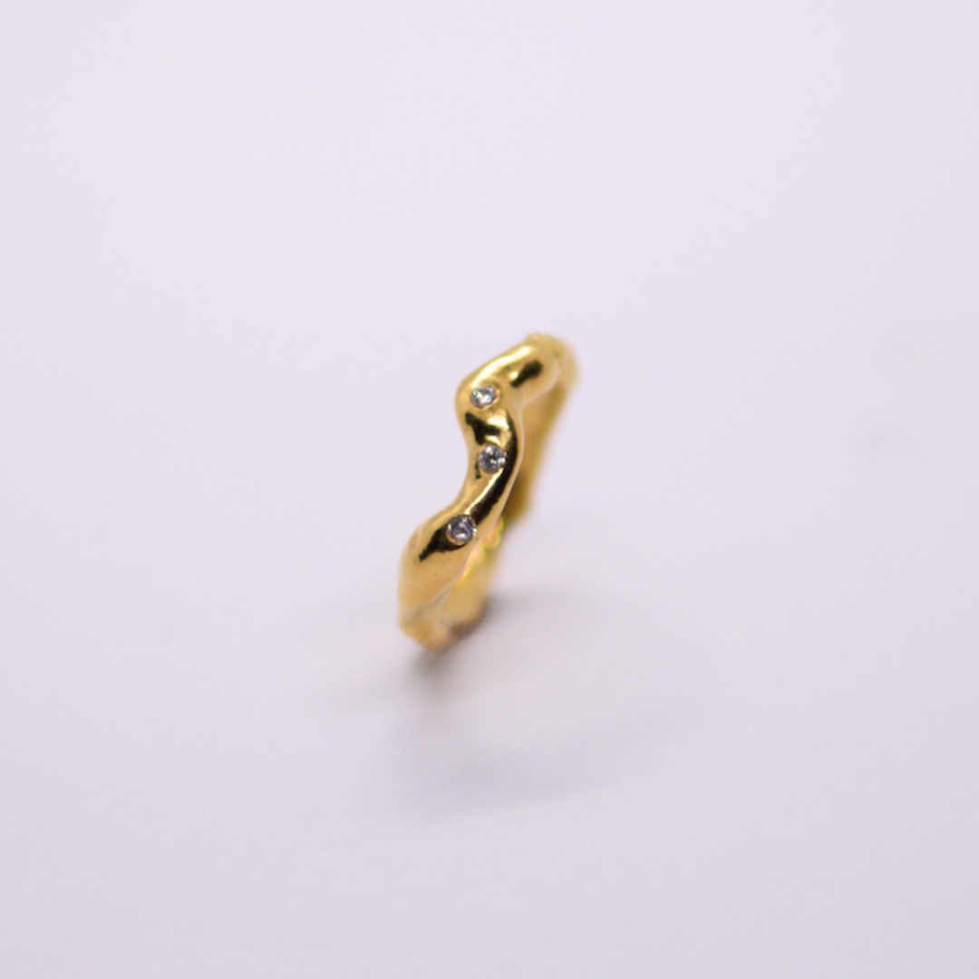 Bague en vermeil (argent 925 plaqué or 18K – 5 microns), sertie de trois oxydes scintillantes.